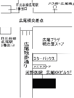 河野医院アクセス 住所 〒150-0012 東京都渋谷区広尾5−14−2 広尾KKビル1F 東京メトロ日比谷線「広尾駅」1番または2番出口より徒歩2分。 都営バス 品97、黒77、橋86、広尾駅前(広尾橋)下車、徒歩2分。 広尾商店街(Hiroo散歩ど〜り)中程